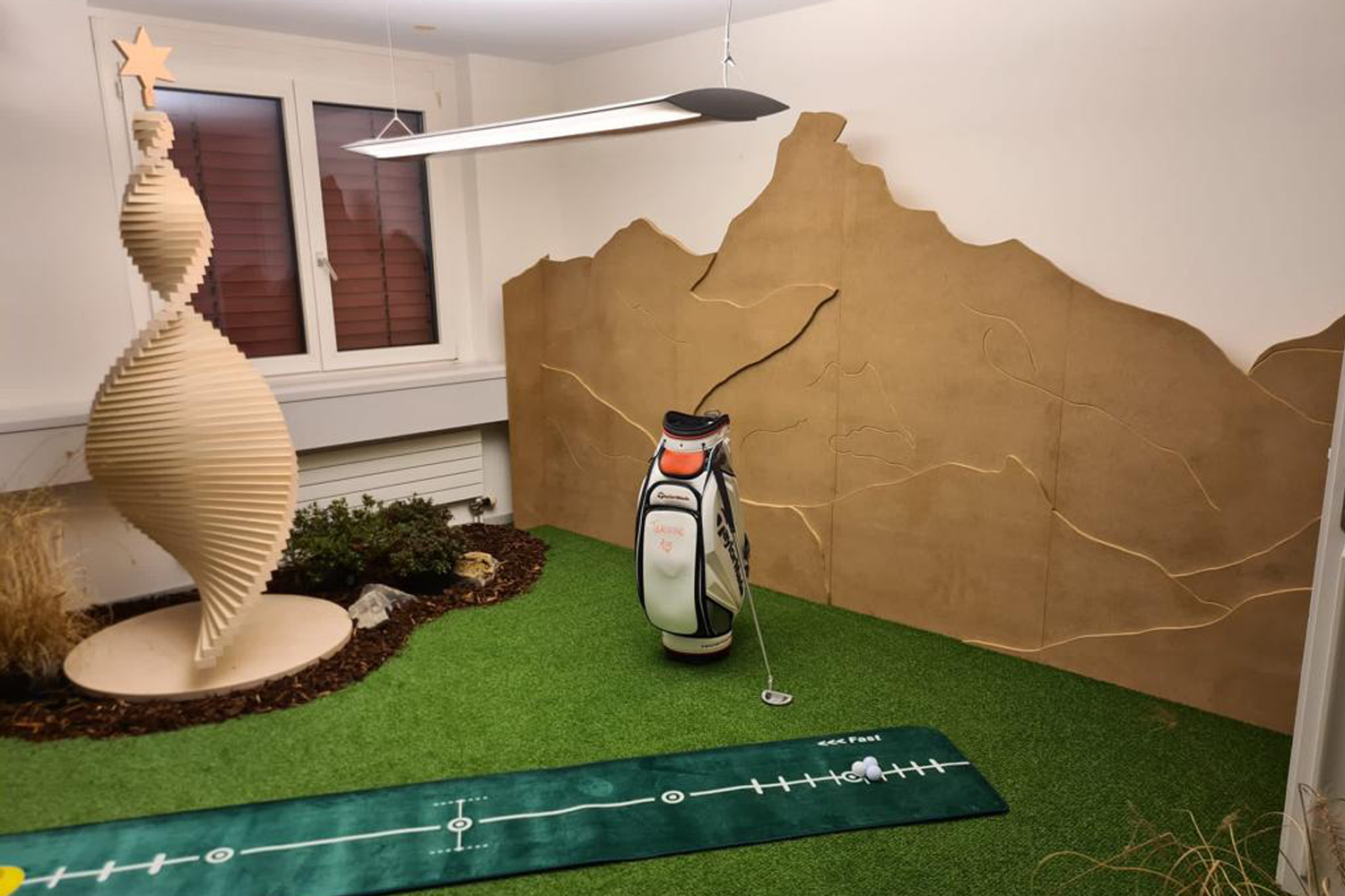 Spezialanfertigung eines Holztannenbaumes für einen Golfshop