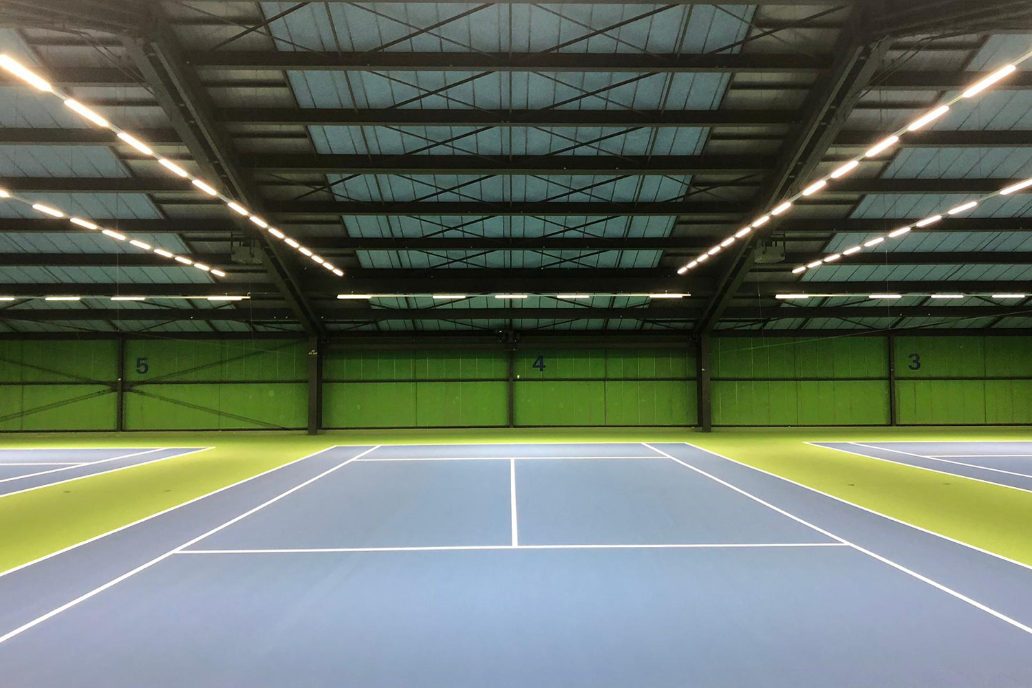 Renovation einer gesamten Tennishalle mit fünf Plätzen nach Wasserschaden